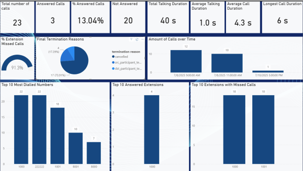 Damit lassen sich Anrufstatistiken, Warteschlangen und Agentenaktivitäten direkt in Microsoft Power BI visualisieren.