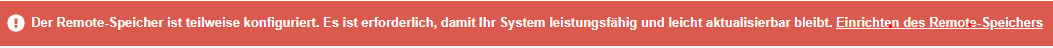 „Der Remote-Speicher ist teilweise konfiguriert. Es ist erforderlich, damit Ihr System leistungsfähig und leicht aktualisierbar bleibt.“